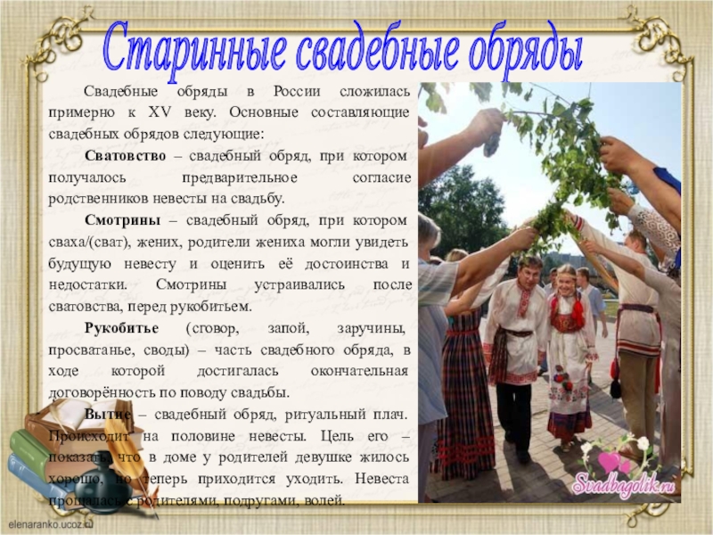 Слайд 5Свадебные обряды в России сложилась примерно к XV веку. Основные