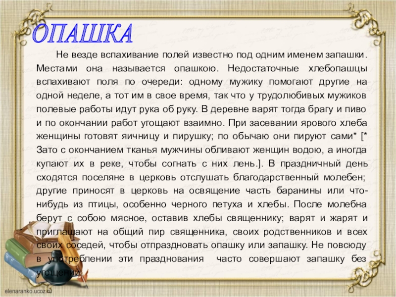 она называется опашкою. Недостаточные хлебопашцы вспахивают поля по очереди: одному