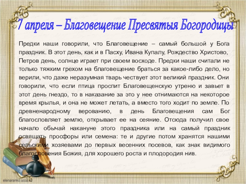 Слайд 25Предки наши говорили, что Благовещение – самый большой у Бога