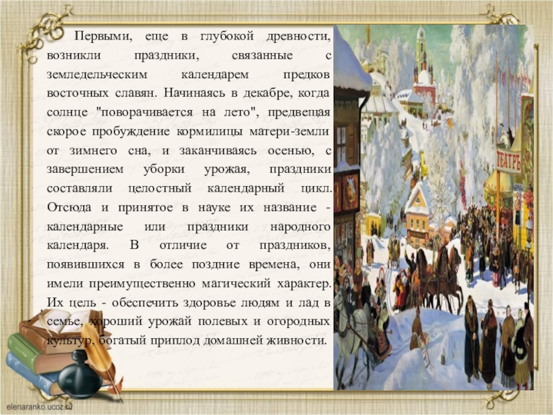 Слайд 39 Изменение времен года праздновалось в языческом мире с религиозными обрядами,