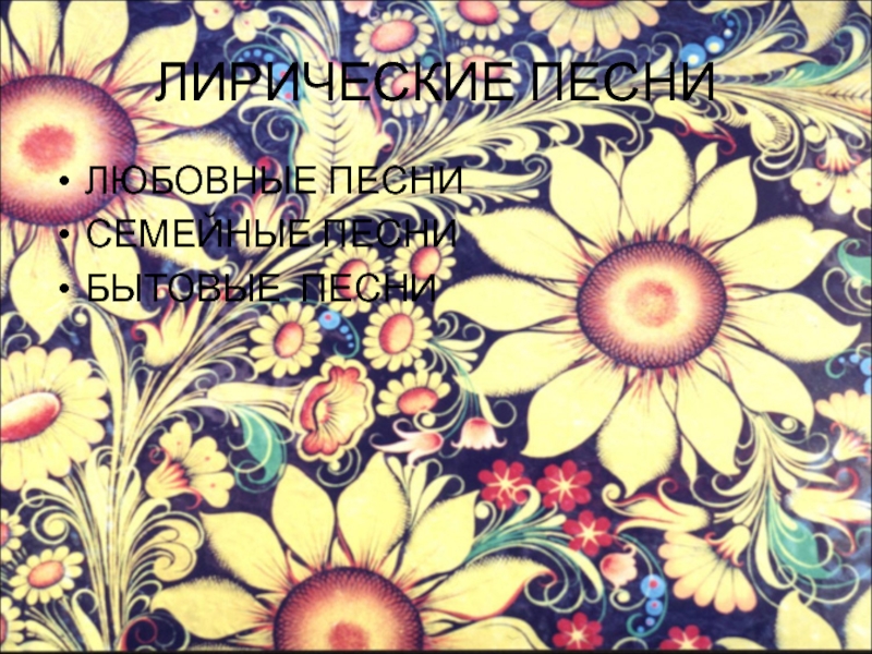 Слайд 12ЛИРИЧЕСКИЕ ПЕСНИ