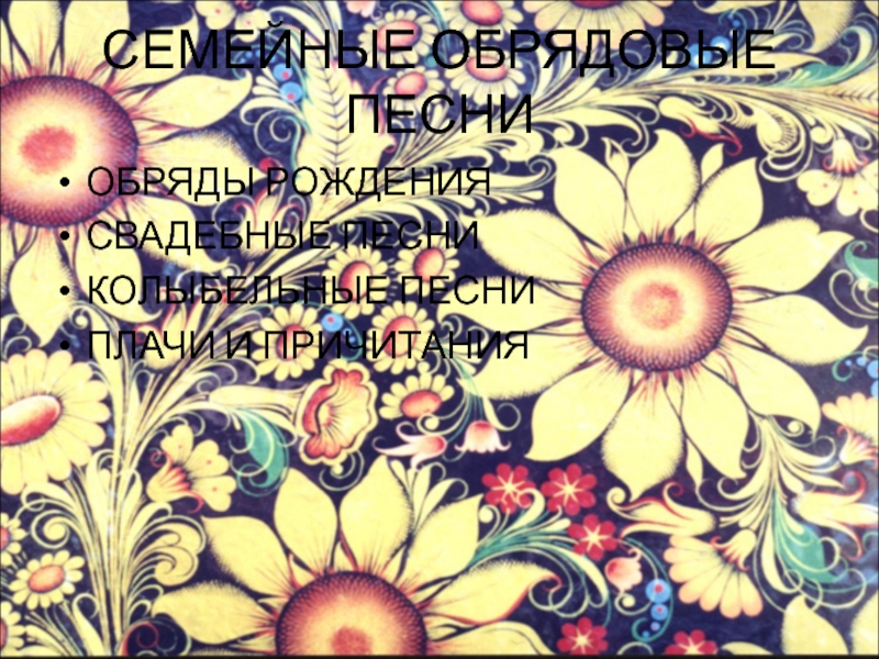 Слайд 10СЕМЕЙНЫЕ ОБРЯДОВЫЕ ПЕСНИ