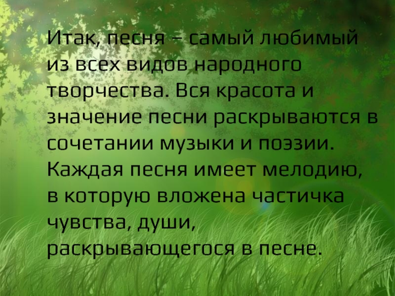Слайд 8 Итак, песня – самый любимый из всех видов