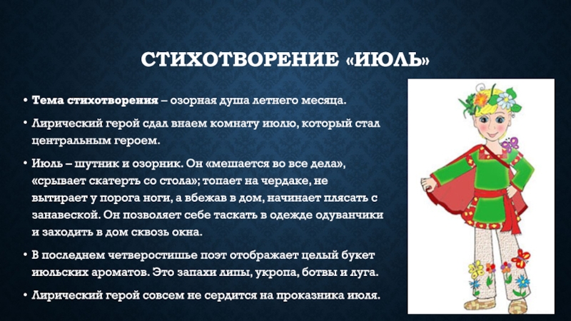 Слайд 25Прочитайте стихотворение «Июль –макушка лета» (стр. 141)