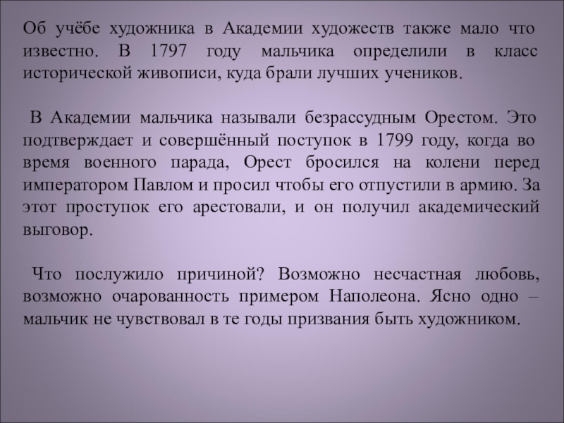Слайд 51Об учёбе художника в Академии художеств также мало что известно.