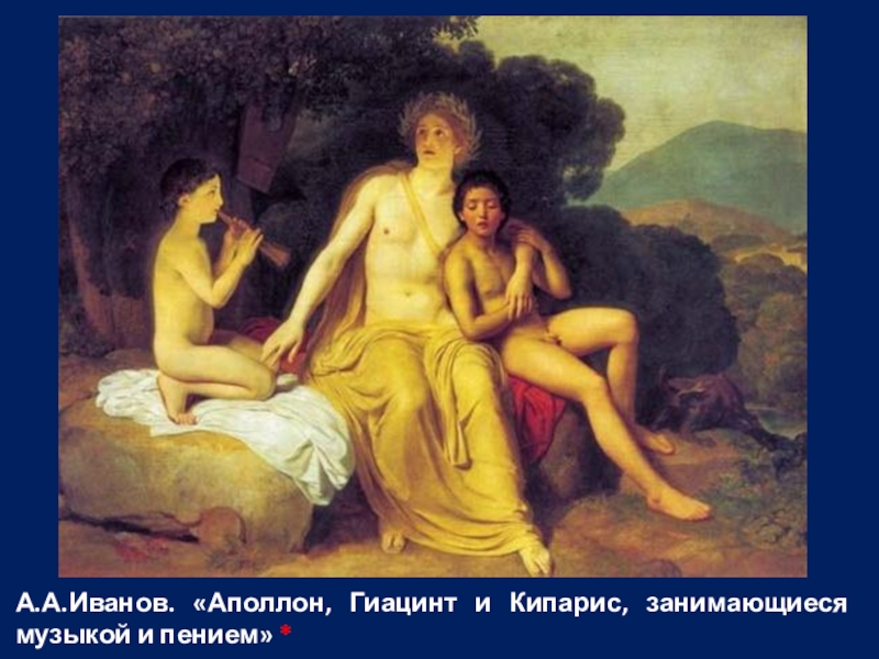 Слайд 9А.А.Иванов. «Аполлон, Гиацинт и Кипарис, занимающиеся музыкой и пением» *
