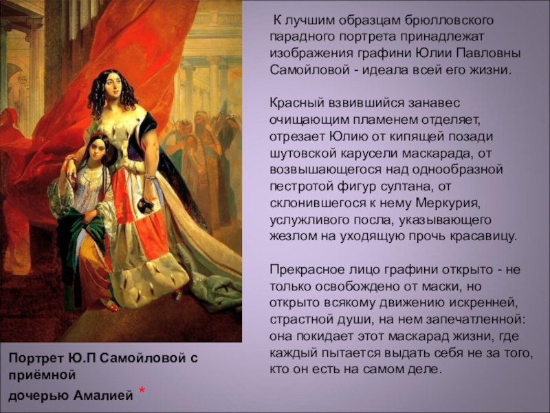 Слайд 25 К лучшим образцам брюлловского парадного портрета принадлежат изображения графини