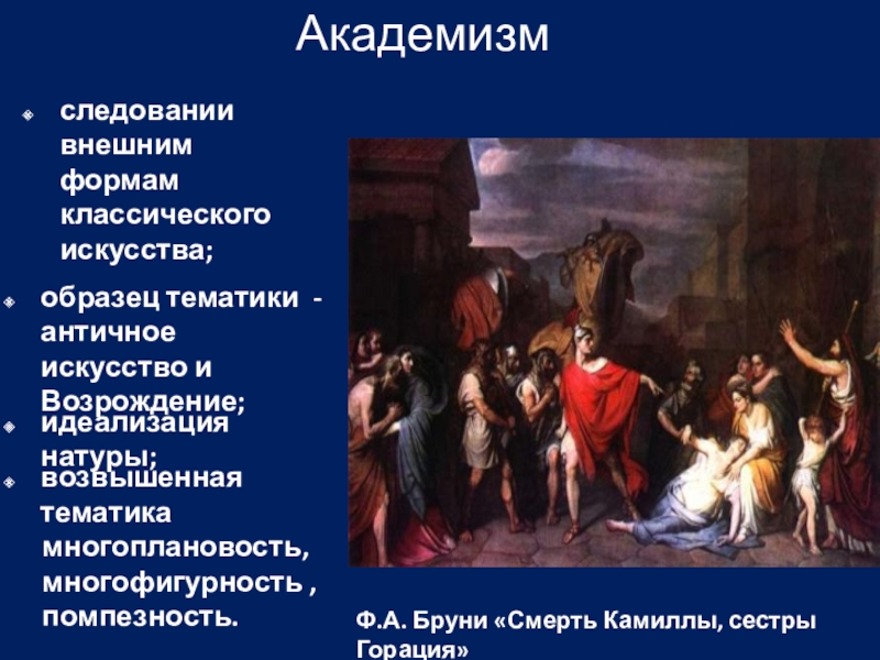 Слайд 5Ф.А. Бруни «Смерть Камиллы, сестры Горация»