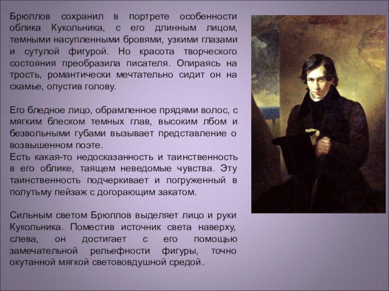 Автор, в отличие от романтических портретистов, старался подчеркнуть