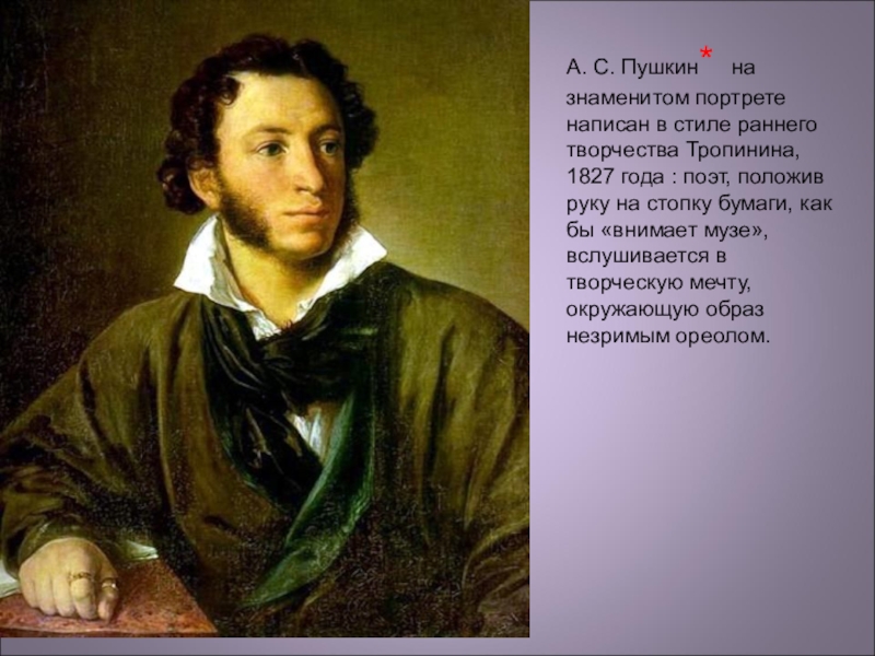 Слайд 67А. С. Пушкин* на знаменитом портрете написан в стиле раннего
