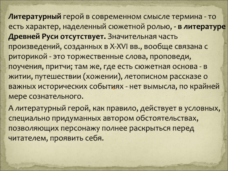 наделенный сюжетной ролью, - в литературе Древней Руси отсутствует. Значительная