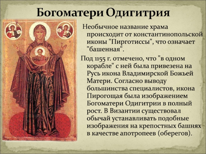 Слайд 16 Необычное название храма происходит от константинопольской иконы "Пирготиссы", что