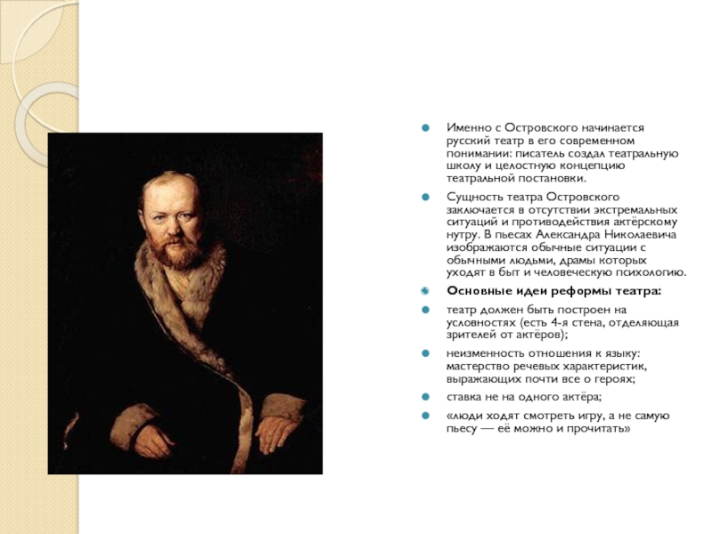 Слайд 4Именно с Островского начинается русский театр в его современном понимании: