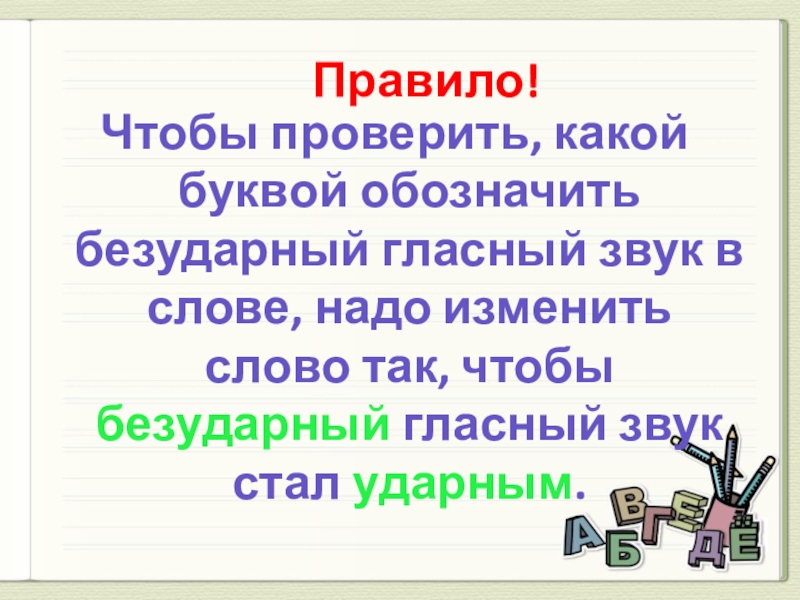 Чтобы проверить, какой буквой обозначить безударный гласный звук в