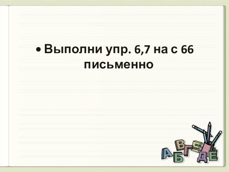 Слайд 11Выполни упр. 6,7 на с 66 письменно