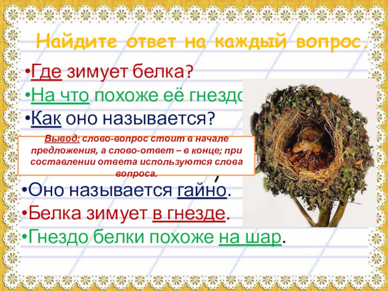 Вывод: в ответе повторяются слова вопроса; начало ответа строится из последних слов вопроса.
