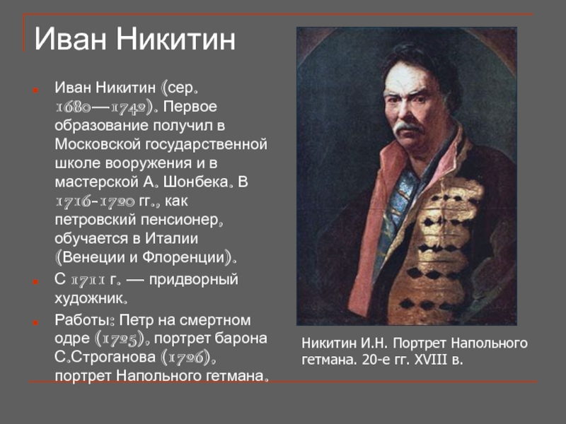 Никитин И.Н. Портрет Напольного гетмана. 20-е гг. XVIII в.