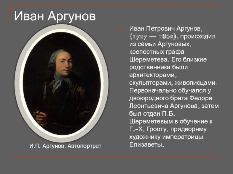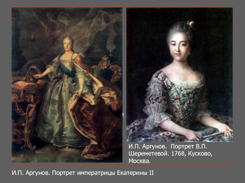 И.П. Аргунов. Портрет В.П. Шереметевой. 1768, Кусково, Москва.