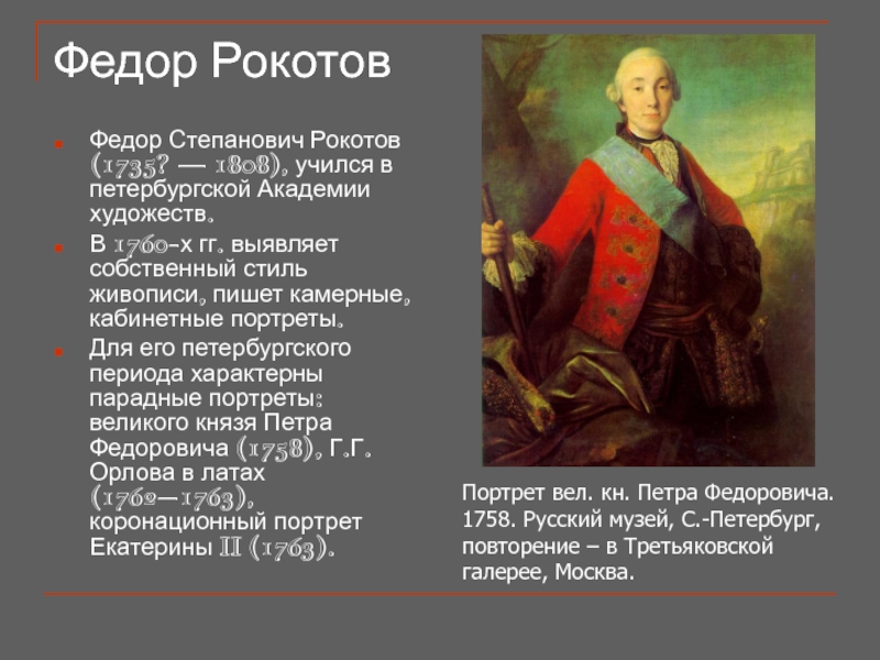 Портрет вел. кн. Петра Федоровича. 1758. Русский музей, С.-Петербург,