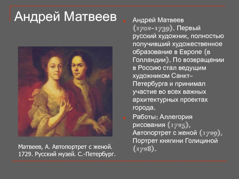 Матвеев, А. Автопортрет с женой. 1729. Русский музей. С.-Петербург.