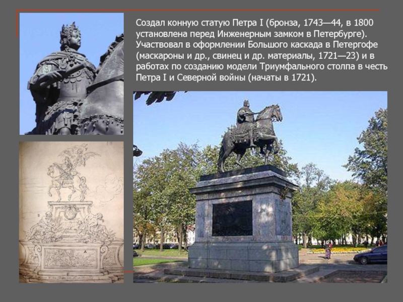 Рисунок памятника Петру I, выполненный Б.-К.Растрелли в 1716 г.