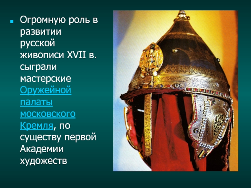 Слайд 39Огромную роль в развитии русской живописи XVII в. сыграли мастерские