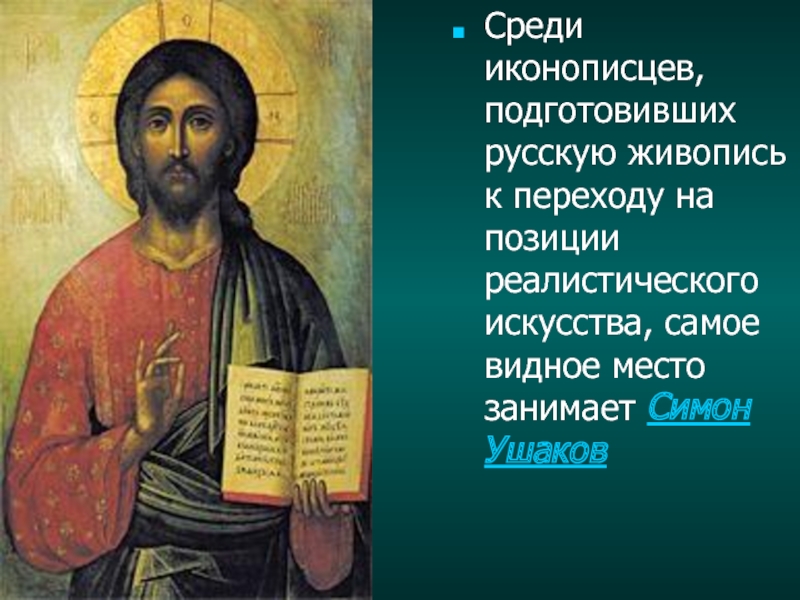 Слайд 40Среди иконописцев, подготовивших русскую живопись к переходу на позиции реалистического