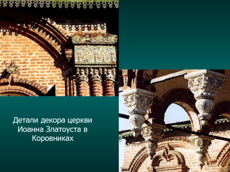 Слайд 18Детали декора церкви Иоанна Златоуста в Коровниках