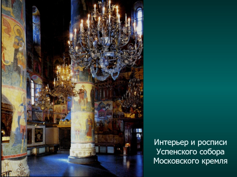 Слайд 36Интерьер и росписи Успенского собора Московского кремля