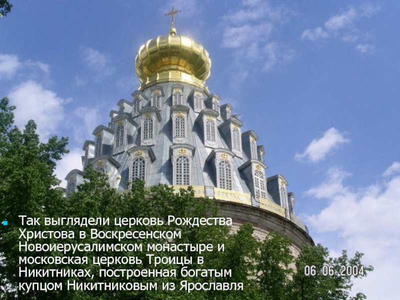 Слайд 5Так выглядели церковь Рождества Христова в Воскресенском Новоиерусалимском монастыре и