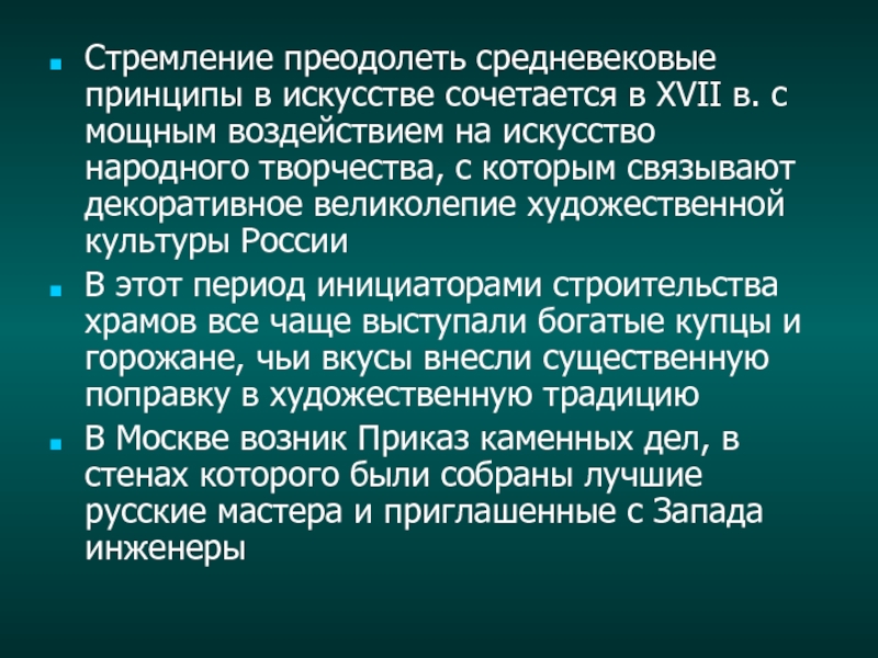 Слайд 1РУССКОЕ ИСКУССТВО ПРИ ПЕРВЫХ РОМАНОВЫХ
