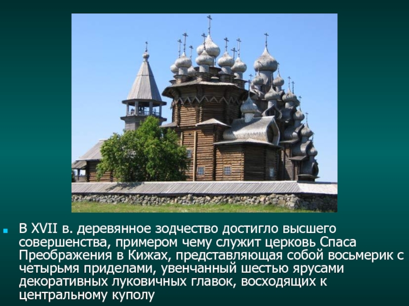 Слайд 19В XVII в. деревянное зодчество достигло высшего совершенства, примером чему