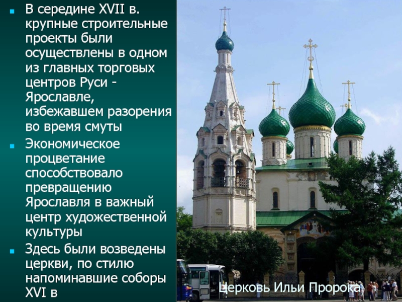 Экономическое процветание способствовало превращению Ярославля в важный центр художественной культуры