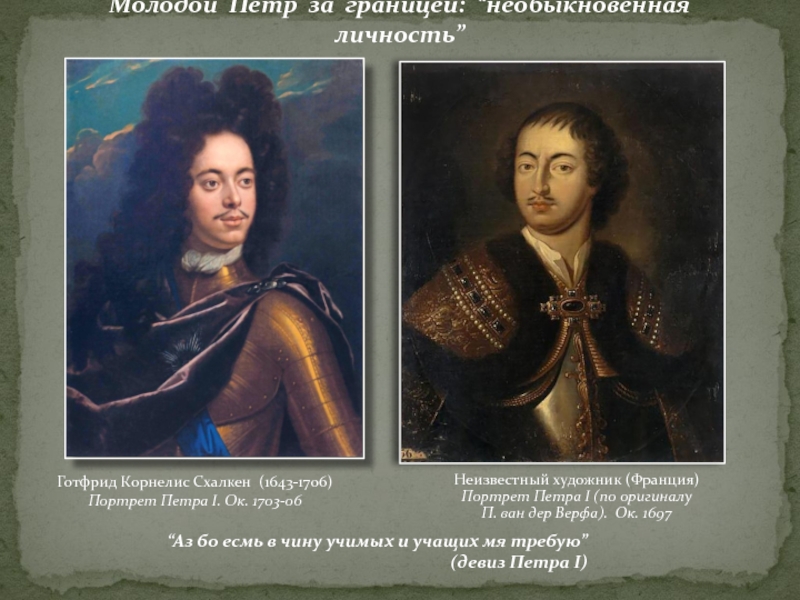 Слайд 3Молодой Петр за границей: “необыкновенная личность”