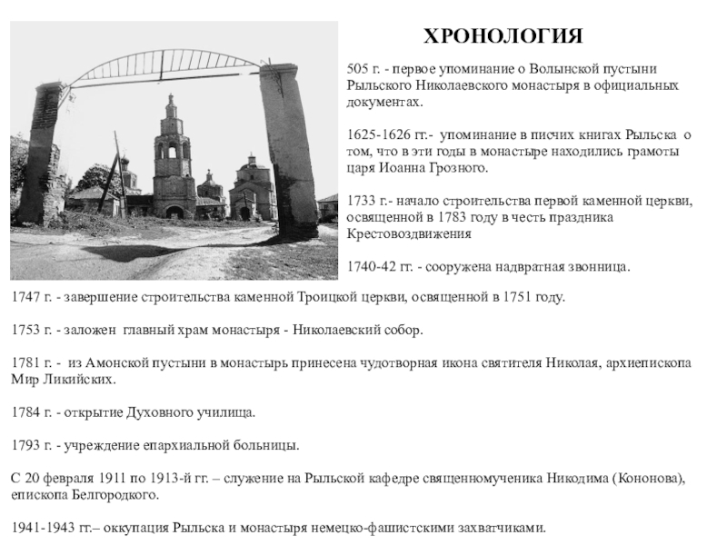 1941-1943 гг.– оккупация Рыльска и монастыря немецко-фашистскими захватчиками.
