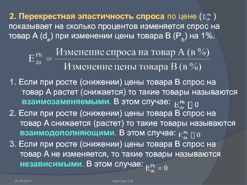 Коэффициент прямой эластичности всегда отрицателен, поскольку цена и величина спроса на товар меняются в разных направлениях: когда цена снижается, спрос растет, и наоборот.