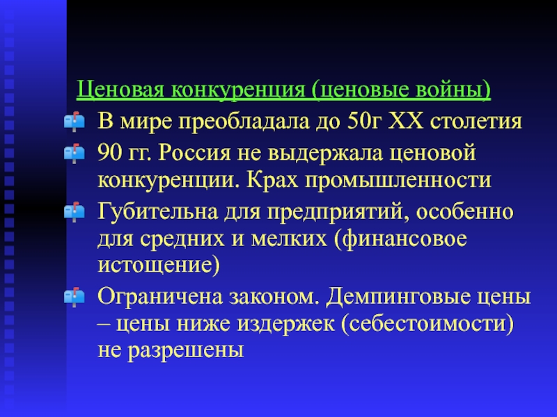Слайд 9Ценовая конкуренция (ценовые войны)