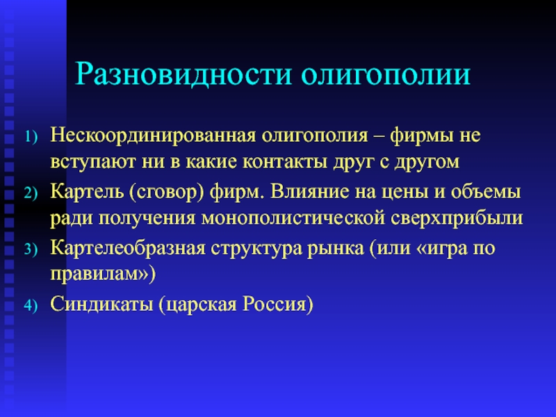 Нескоординированная олигополия – фирмы не вступают ни в какие