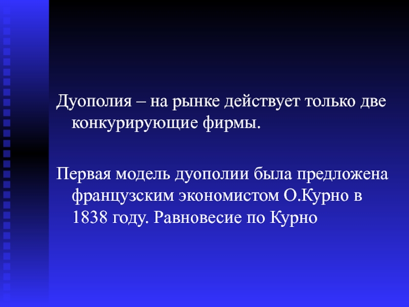 дуополии была предложена французским экономистом О.Курно в 1838 году. Равновесие