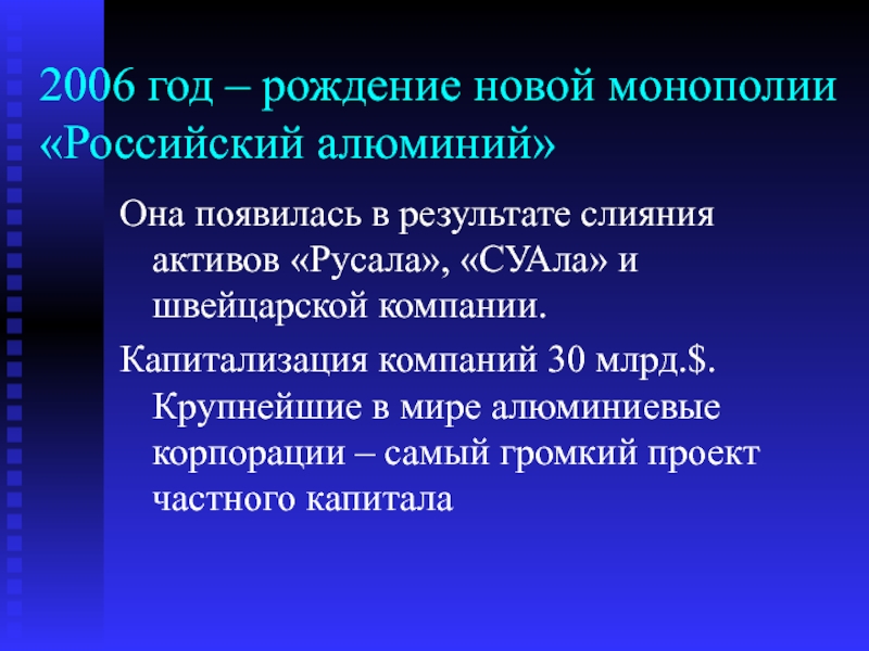 Слайд 262006 год – рождение новой монополии «Российский алюминий»