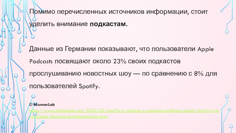 Слайд 22Помимо перечисленных источников информации, стоит уделить внимание подкастам.