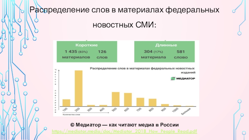 Слайд 15Распределение слов в материалах федеральных новостных СМИ: