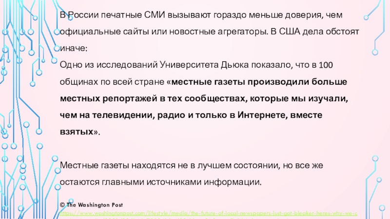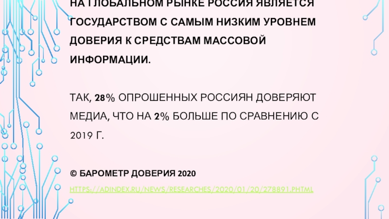 Слайд 18В России печатные СМИ вызывают гораздо меньше доверия, чем официальные