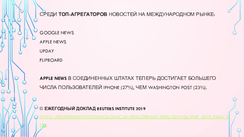 Слайд 8Среди топ-агрегаторов новостей на международном рынке: