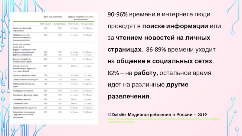 Слайд 2190-96% времени в интернете люди проводят в поиске информации или