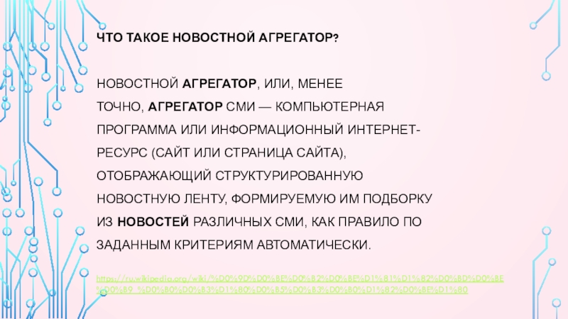 ленту, формируемую им подборку из новостей различных СМИ, как правило по заданным критериям автоматически.