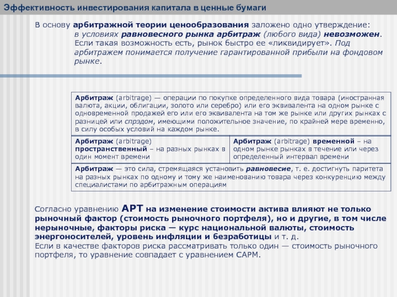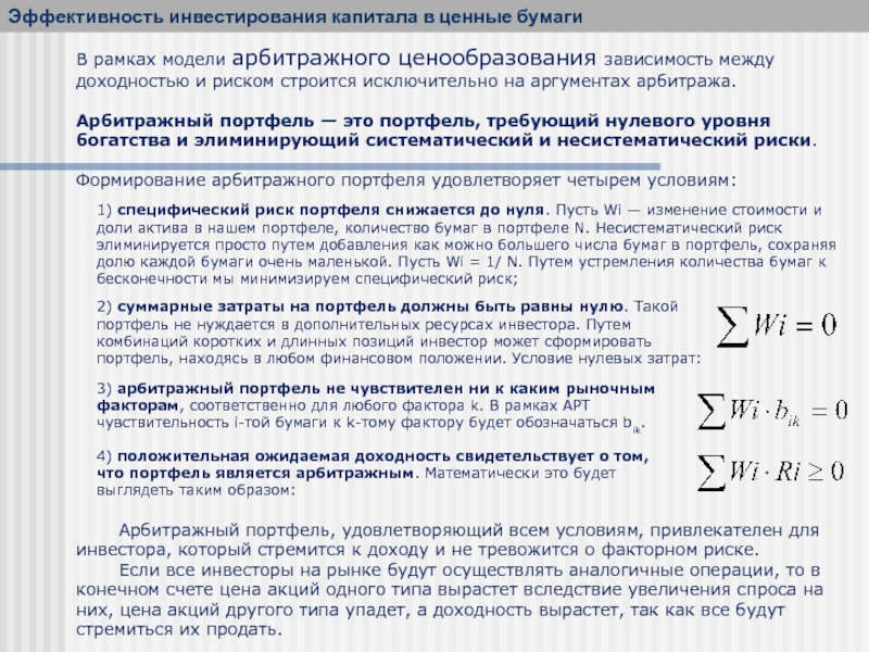 Арбитражный портфель, удовлетворяющий всем условиям, привлекателен для инвестора, который стремится к доходу и не тревожится о факторном риске.