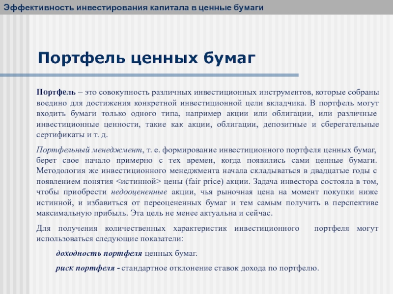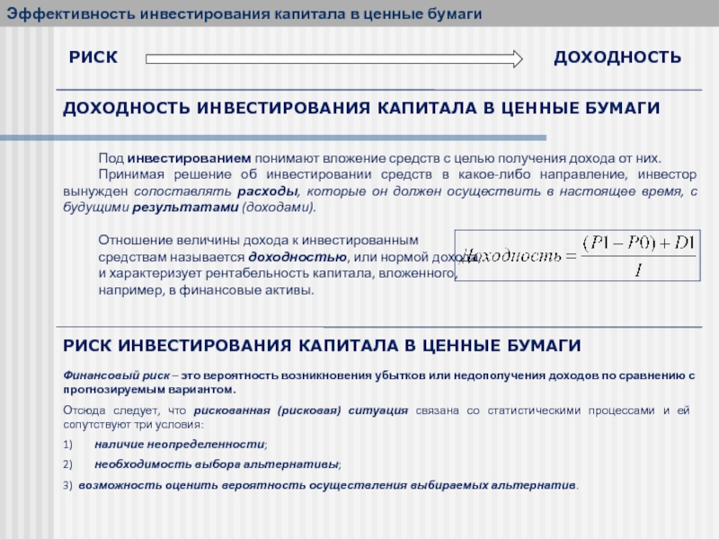РИСК ИНВЕСТИРОВАНИЯ КАПИТАЛА В ЦЕННЫЕ БУМАГИ