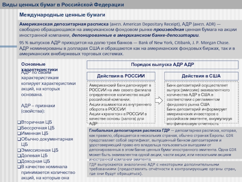 ГДР выпускаются аналогично АДР с некоторыми дополнительными требованиями (предоставлять отчётности в контролирующие органы стран, где они будут обращаться).