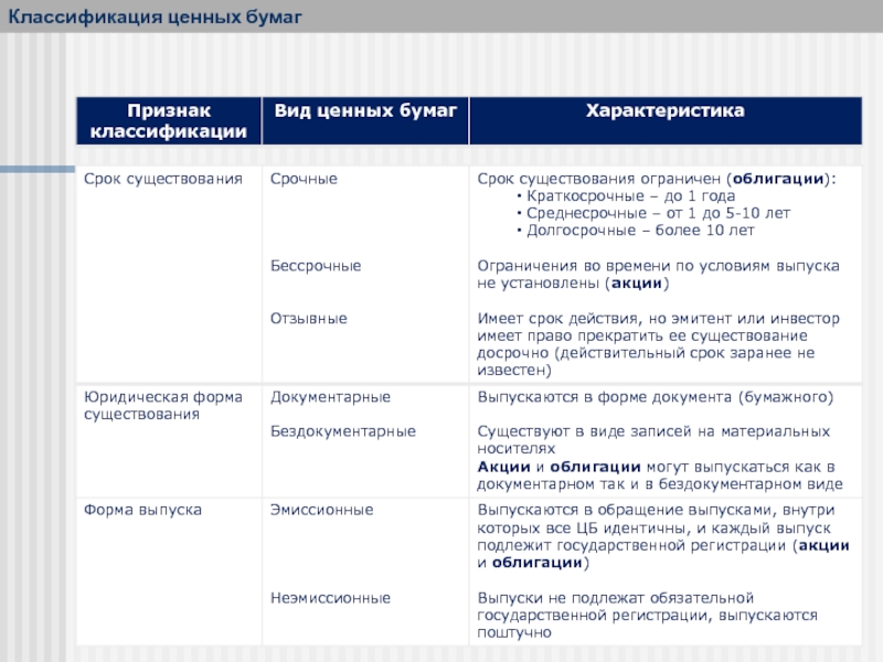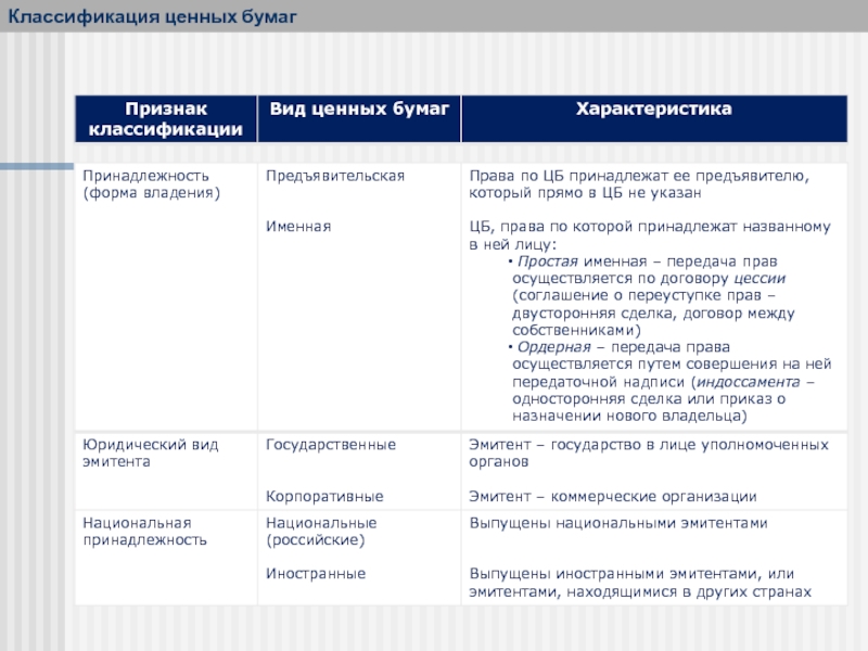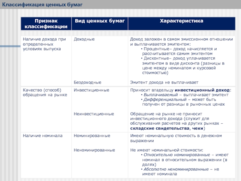 ХАРАКТЕРИСТИКИ ЦЕННЫХ БУМАГ